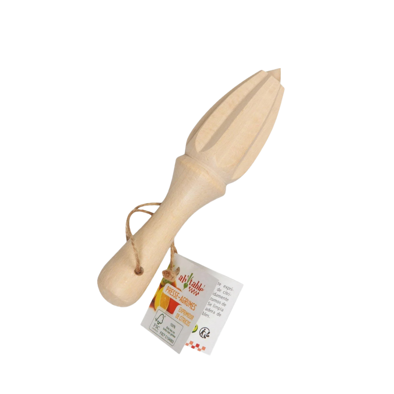 Spremiagrumi in legno di faggio, ideale per preparare in modo semplice e veloce succhi di limone, arancia e altri agrumi. Un oggetto essenziale, pensato per i gesti quotidiani in cucina.